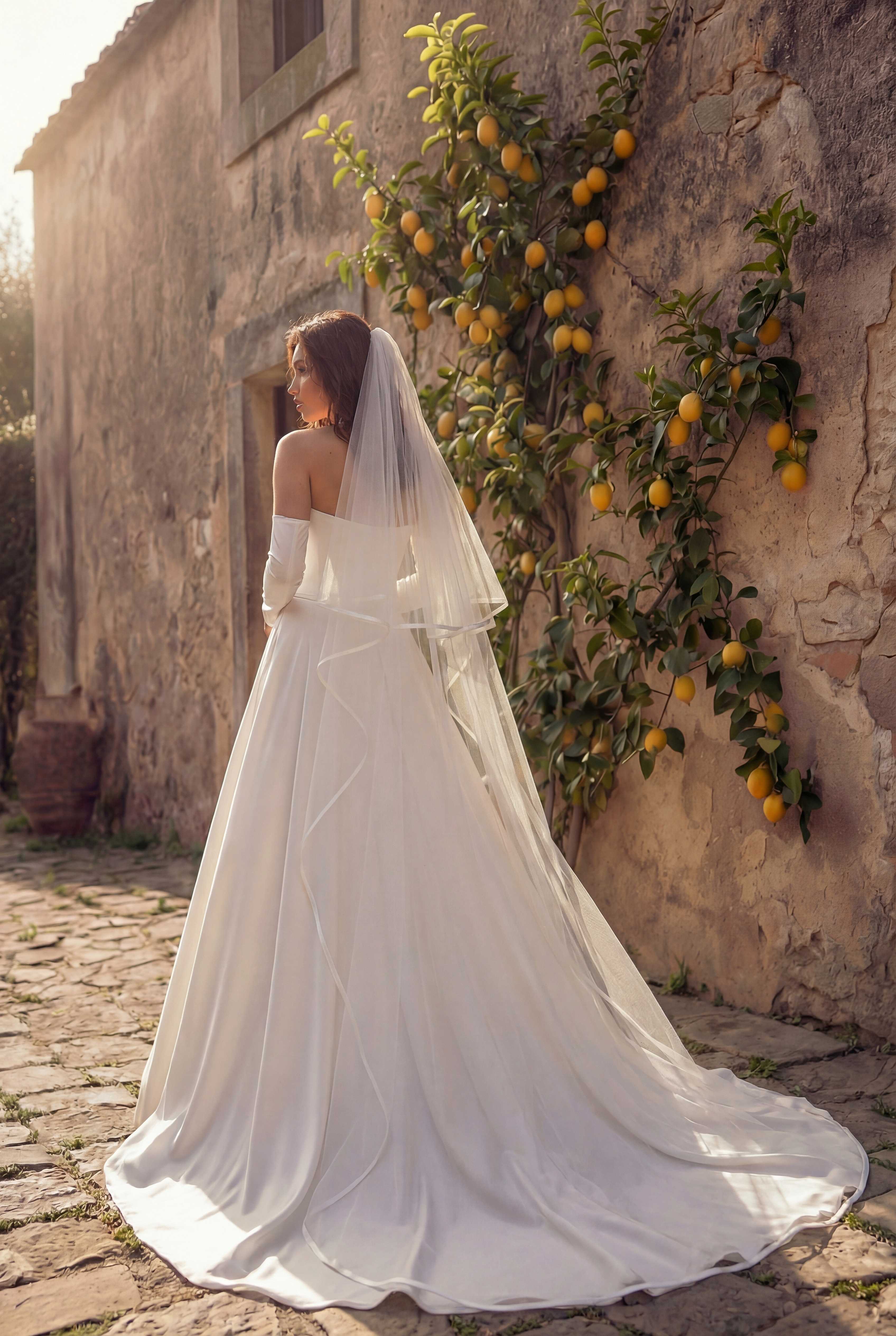 Фата с шелковой атласной лентой в ассортименте от 8.500 до 12.500. Стоимость варьируется от длины фаты. На фото фата размером 2*3м. ...