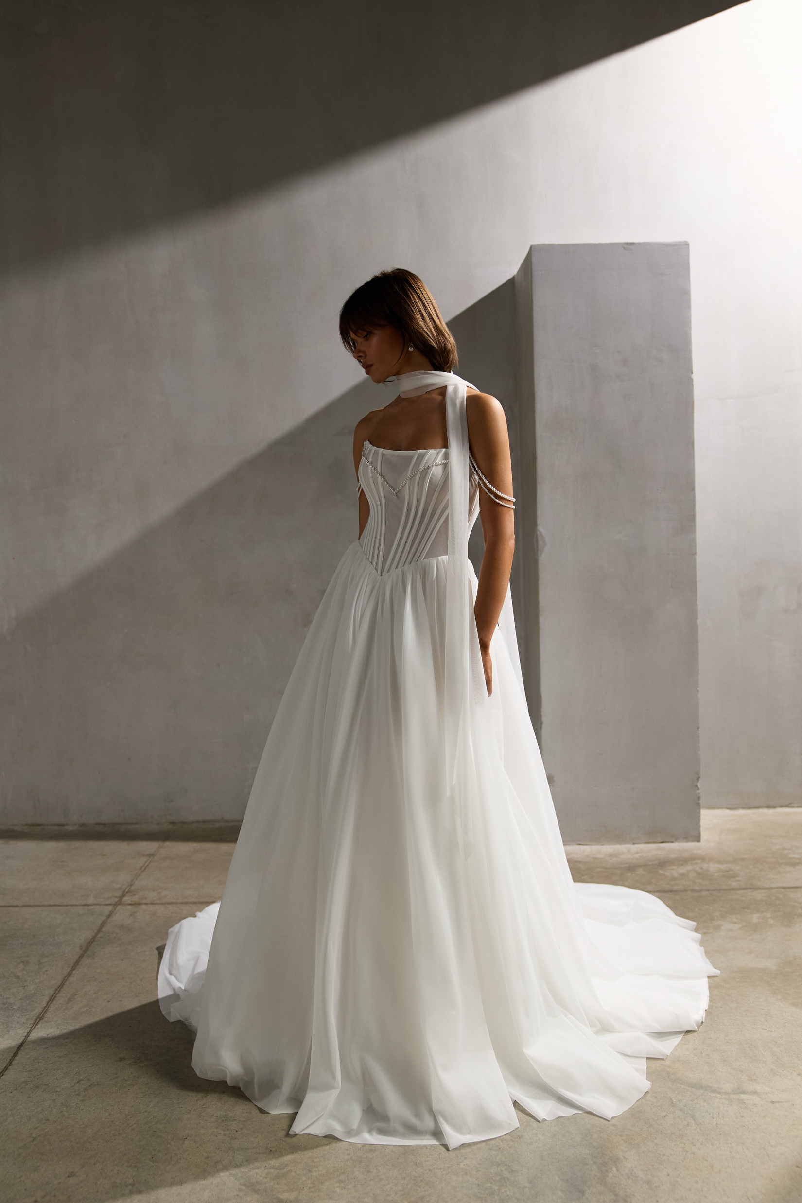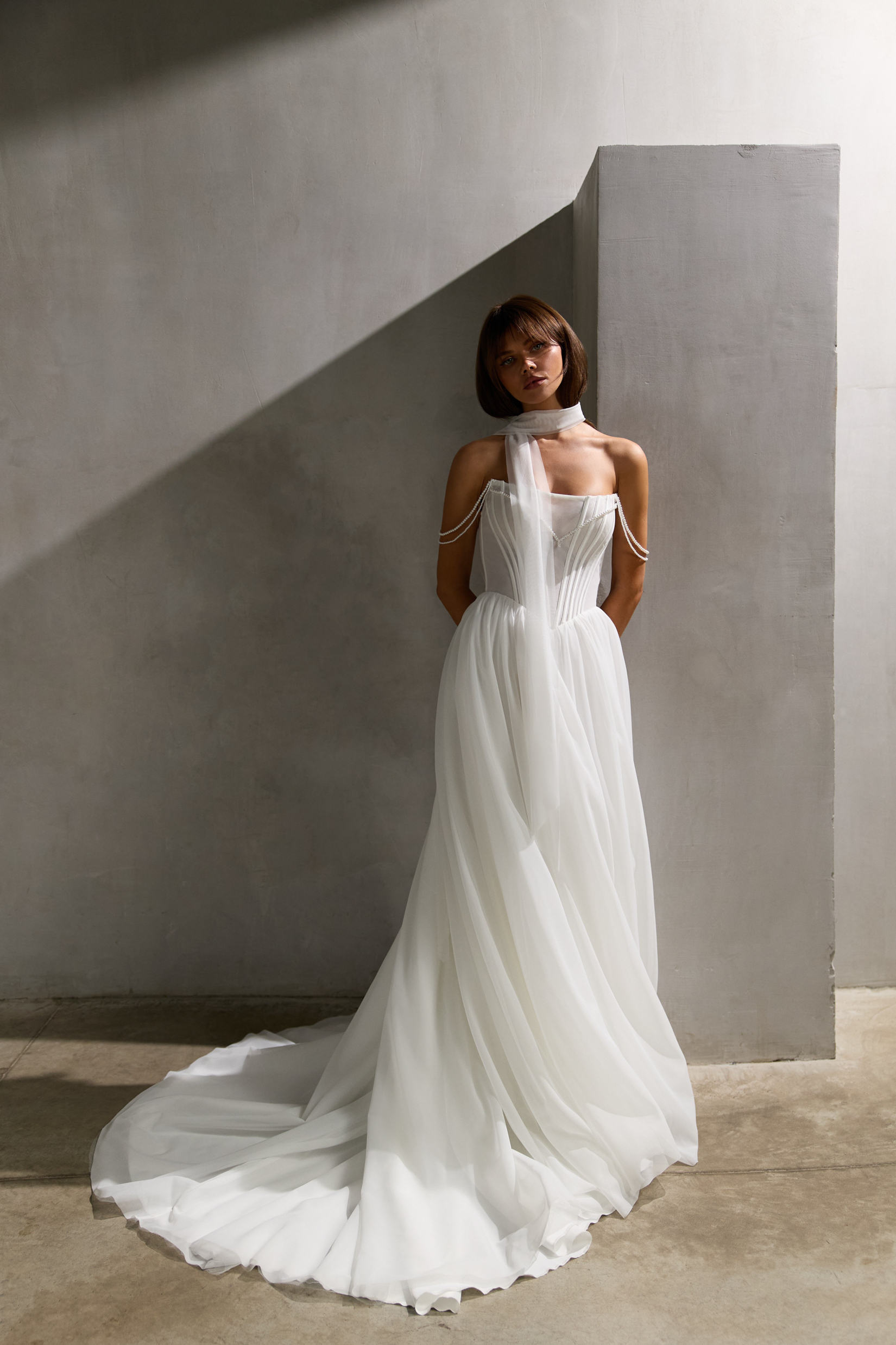 Свадебное платье в стиле минимализм. Шарф продается отдельно. ...